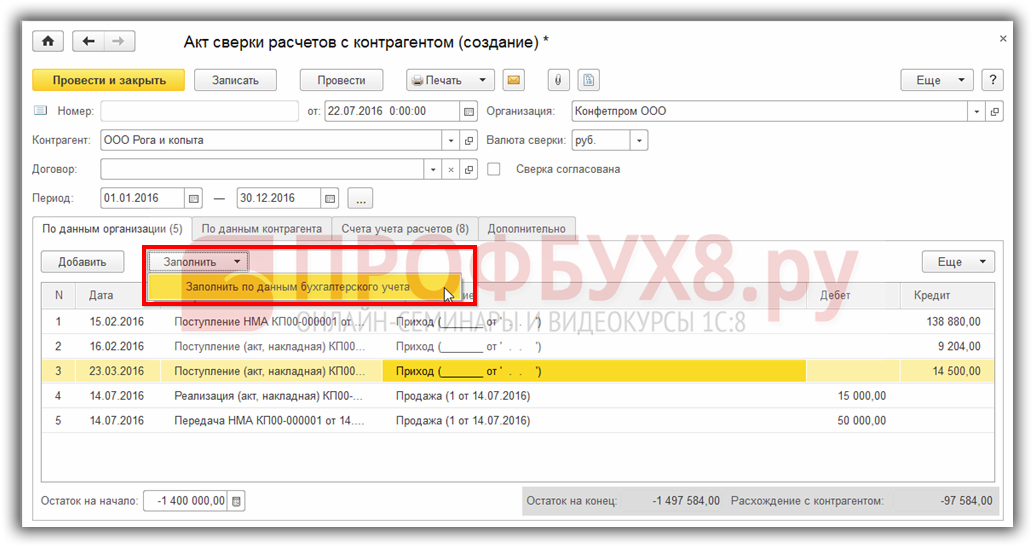 - Представитель организации и Представитель контрагента – уполномоченные лица, подписывающие Акт сверки;