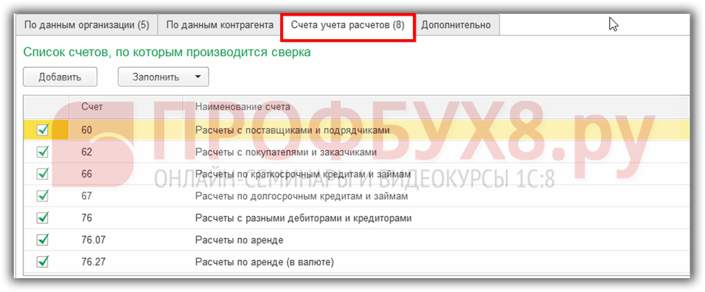Документы можно занести с помощью кнопки Добавить вручную или автоматически нажав Заполнить – по Данным бухгалтерского учёта. При заполнении автоматически анализируется период, а также указанные счета на закладке Счета учёта расчётов: