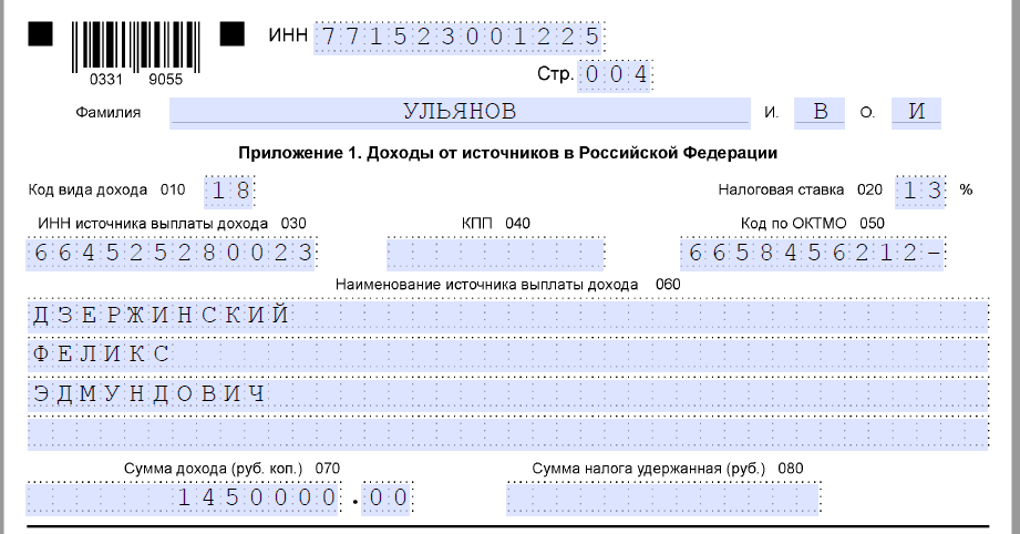Здесь же и данные о том лице, который вам эти доходы выплатил. Его ИНН (если он вам известен), код ОКАТО по его месту жительства.