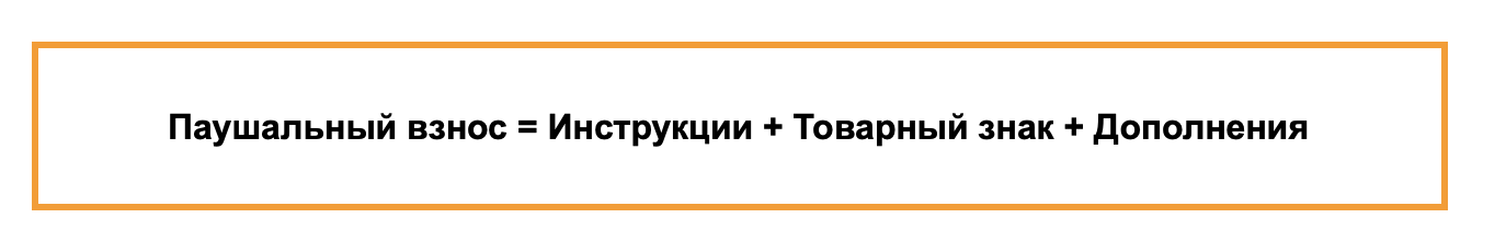 Как правило, паушальный взнос в товарных франшизах устанавливают небольшой. Так, если чистая ежемесячная прибыль вашего бизнеса составляет 200 тыс.руб., то можно сделать паушальный взнос в размере 300-500 тыс.руб.
