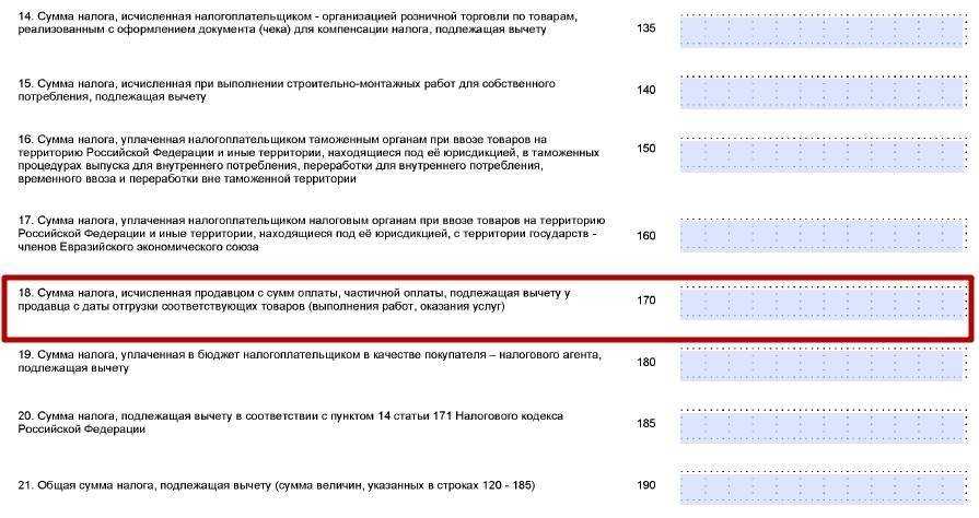 Вычет НДС с авансов полученных отражается в разделе 3 декларации по строке 170 в графе 3 за тот налоговый период, в котором отгружен товар.