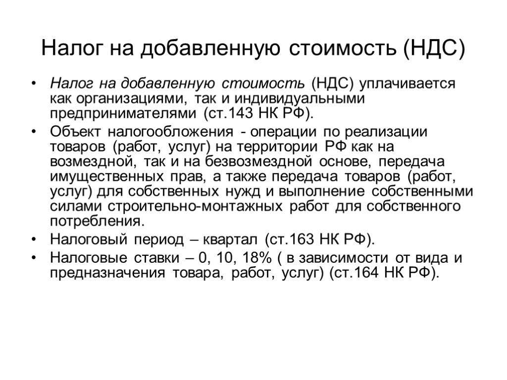 Налог на добавленную стоимость (НДС) — реализация (ст. 146 НК РФ). Если продали что-то — придётся платить. К подаркам это тоже относится.