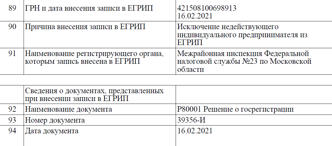 - выписку из Единого государственного реестра индивидуальных предпринимателей о закрытии ИП.