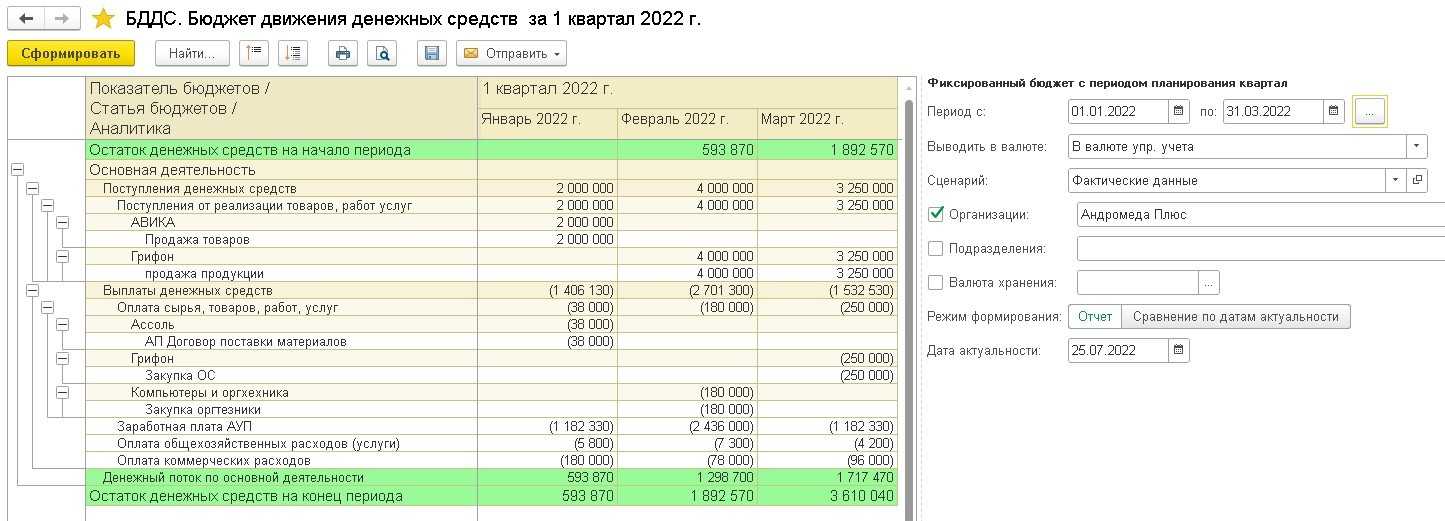 Примеры составления БДР и БДДС