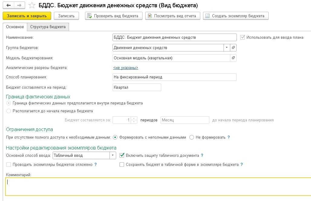 Структура БДДС основана на требованиях методологии формирования отчетов и определяется на этапе бюджетирования.