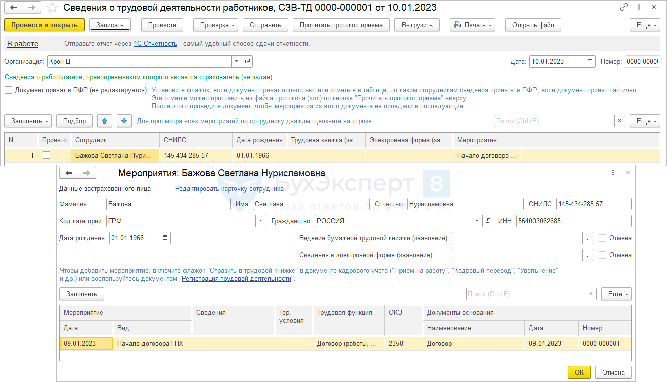 После этого мероприятия попадают в документ СЗВ-ТД и передаются в СФР в составе Раздела 1 ЕФС-1.