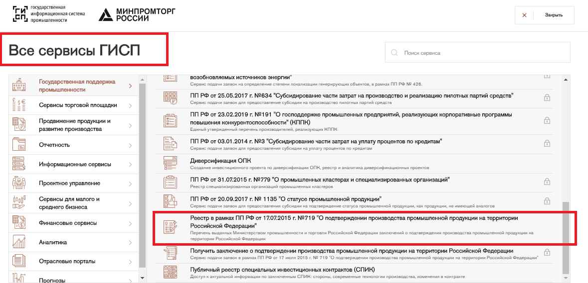 Ниже приведен пошаговый алгоритм, где найти реестр российской промышленной продукции в ГИСП и как проверить наличие товара в таблице: