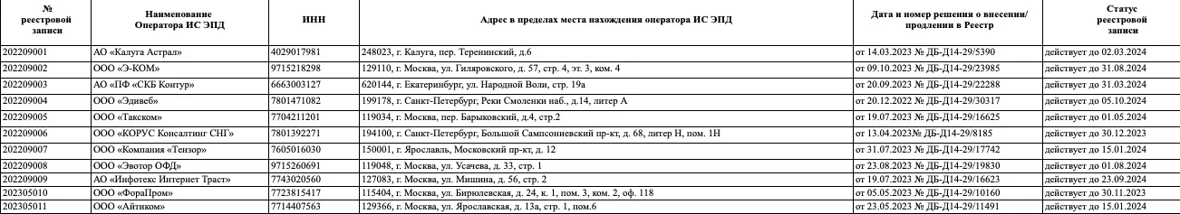 Что же касается статуса подключения к ГИС ЭПД, ведомство на своём официальном сайте вывесил следующую информацию: