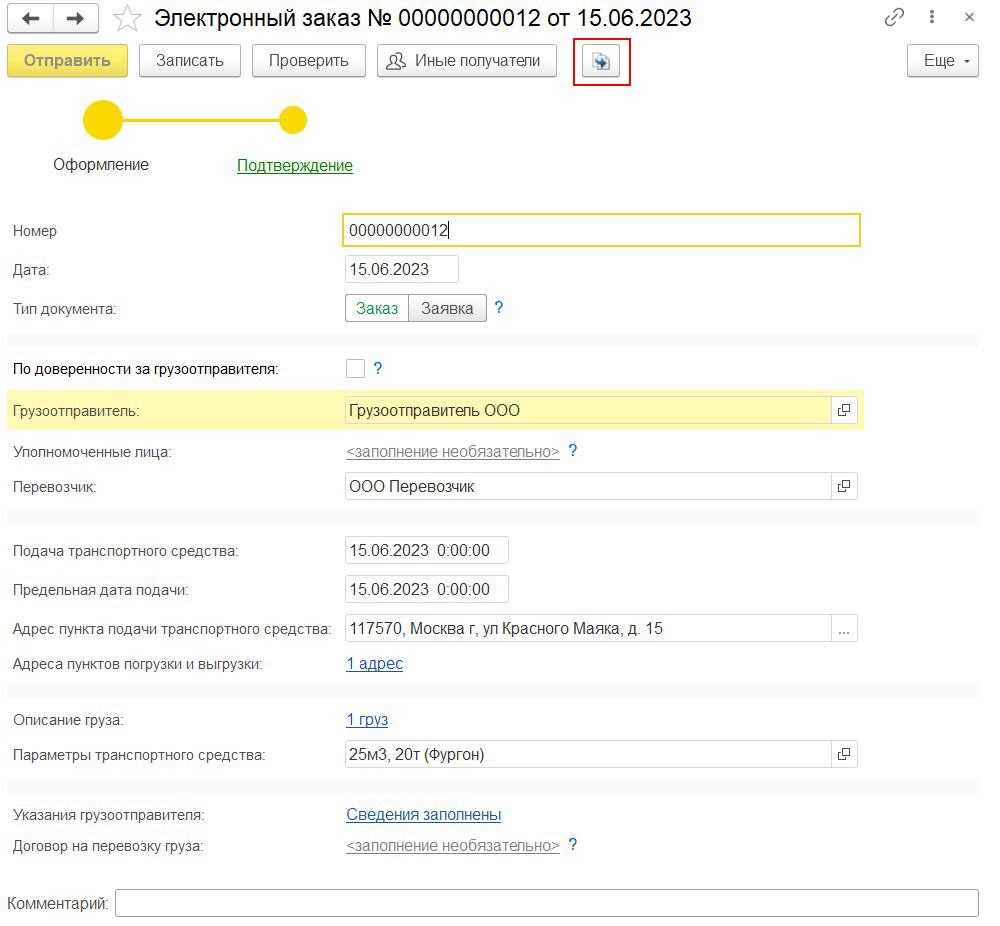 Рис. 11. Этап подтверждения ЭЗЗ грузоотправителем
