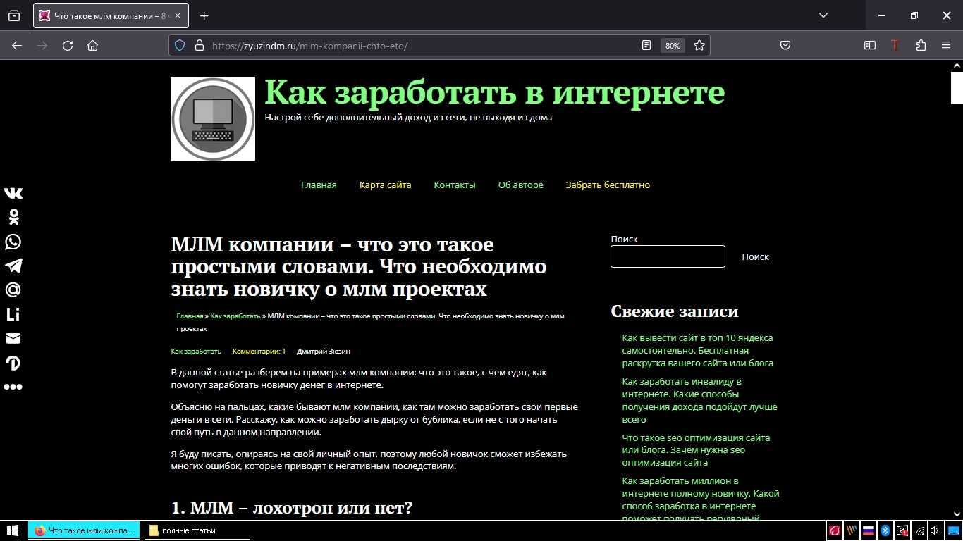 На скриншоте выше вы наблюдаете вот эту мою статью, которая полностью посвящена теме млм индустрии