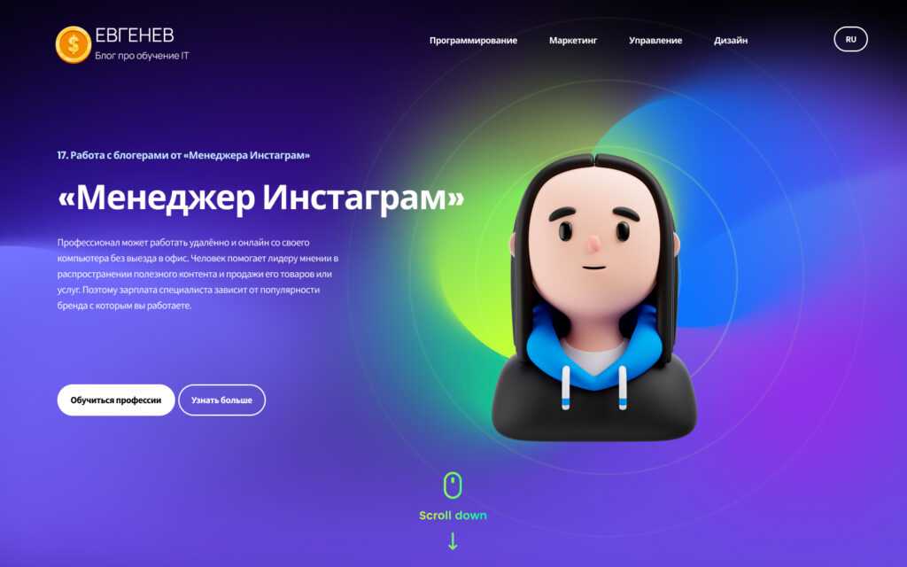 Менеджер Инстаграм занимается продвижением аккаунта в инстаграм с целью увеличения продаж для блогера. В список задач специалиста входит разработка стратегии продвижения, создание постов и сторис, написание сценариев прогрева аудитории для повышения продаж.