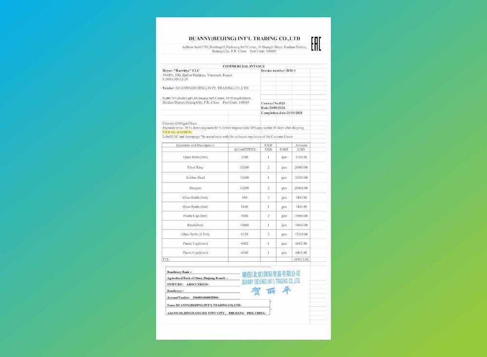 Получив инвойс, важно убедиться в том, что реквизиты в контракте и счете совпадают. Расхождения могут вызвать вопросы у банка и таможни.