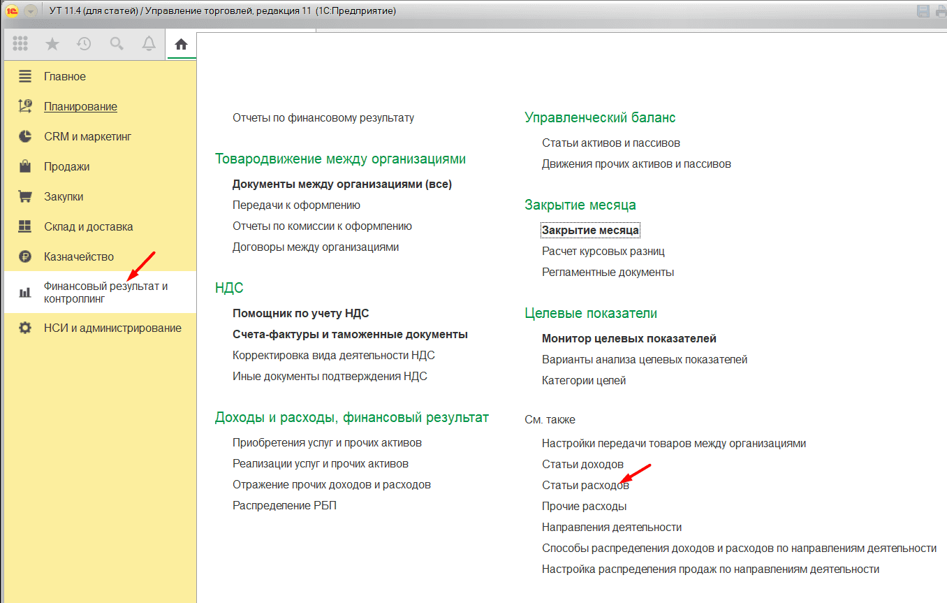 Статьи расходов в УТ 11