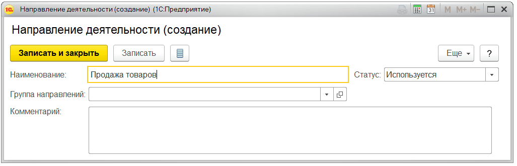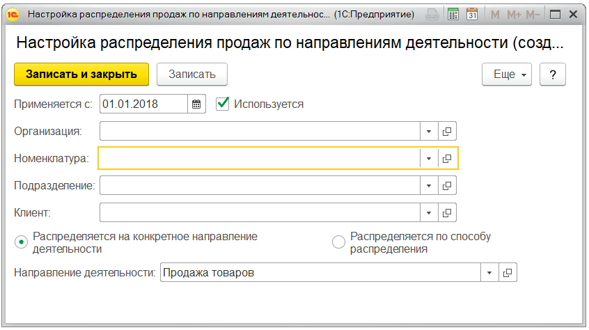 В моем примере все продажи распределяются на направление Продажа товаров.