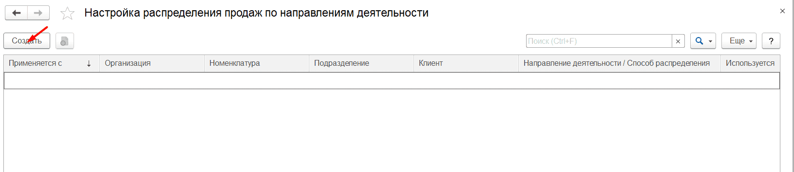 Для распределения доходов и расходов по разным направлениям деятельности нужно создать способы распределения в одноименном справочнике.