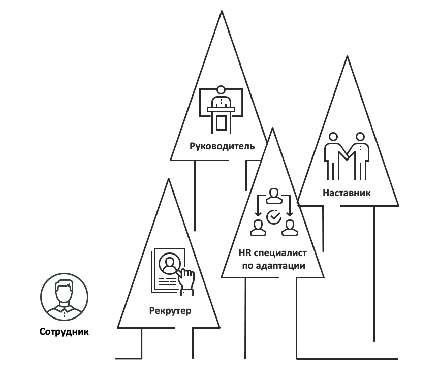 Чтобы чётко разграничить зоны ответственности, лучше составить инструкцию и ряд чеклистов для всех ролей. Подходящие методы помогут эффективно вовлечь представителей компании для равномерного касания с сотрудником на каждом этапе.