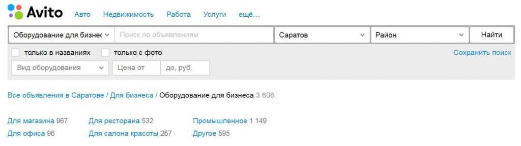На Avito продаётся много подержанных товаров для бизнеса