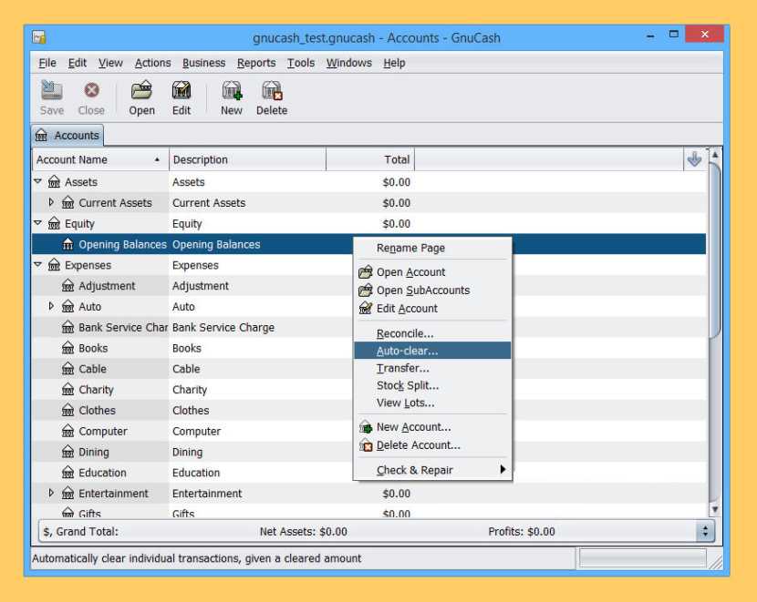 Простая в использовании, но мощная и гибкая система GnuCash позволяет отслеживать банковские счета, акции, доходы и расходы. Такой же быстрый и интуитивно понятный в использовании, как и чековая книжка, он основан на профессиональных принципах бухгалтерского учета для обеспечения сбалансированности книг и точных отчетов.