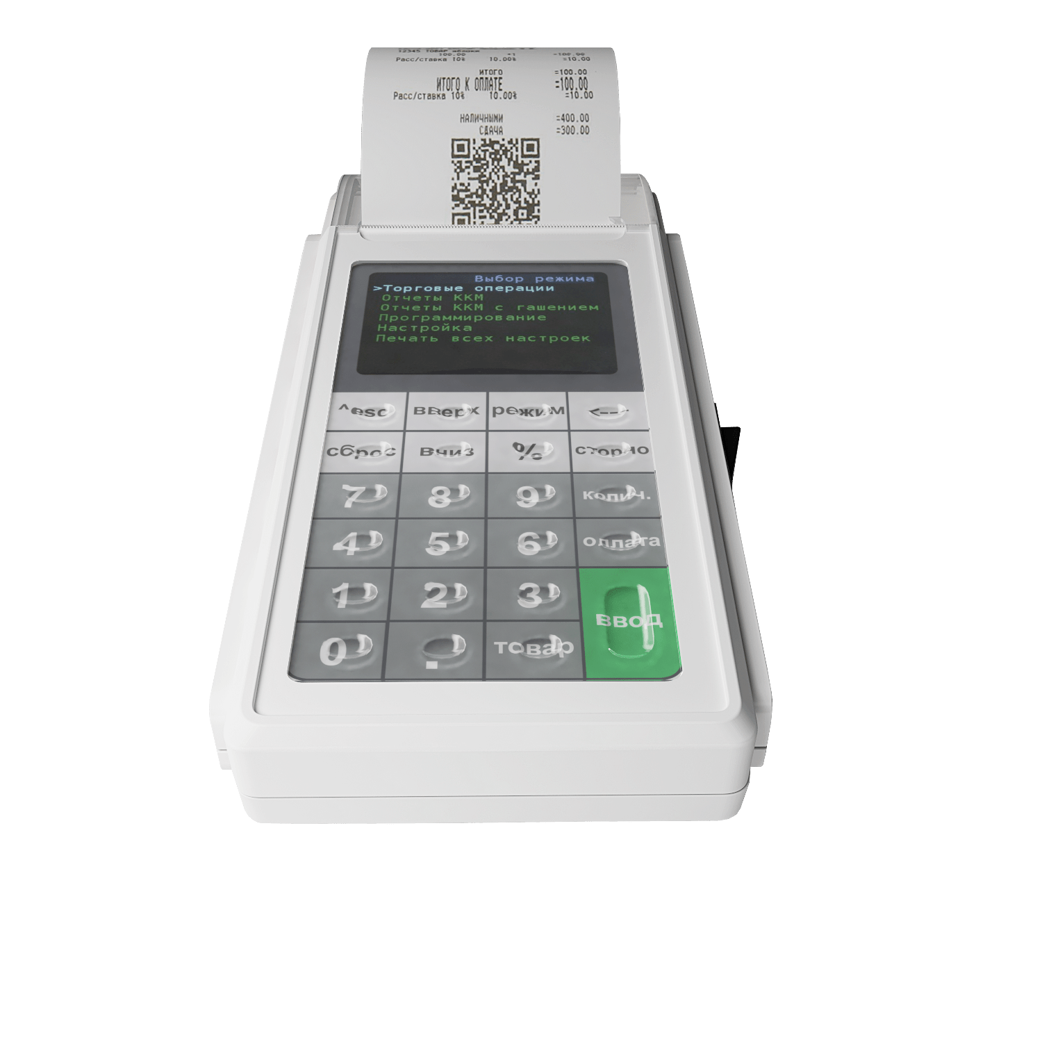 Легкий и удобный, умещается на ладони. Имеет встроенный принтер для печати кассовых чеков. Соединение с интернетом происходит по Wi-Fi или 3G. Главное достоинство аппарата