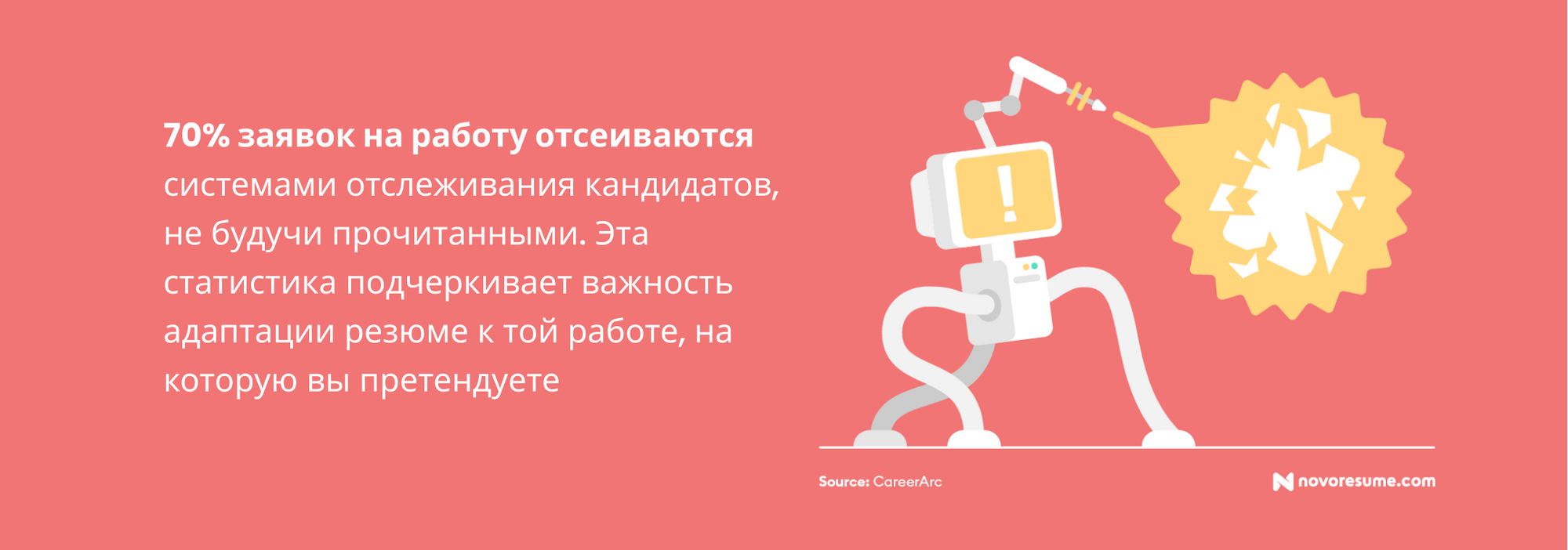 Даже самый крутой специалист не пройдёт первичную проверку резюме, если не примет во внимание особенности автоматической проверки. Почитай статью про ATS с примерами.