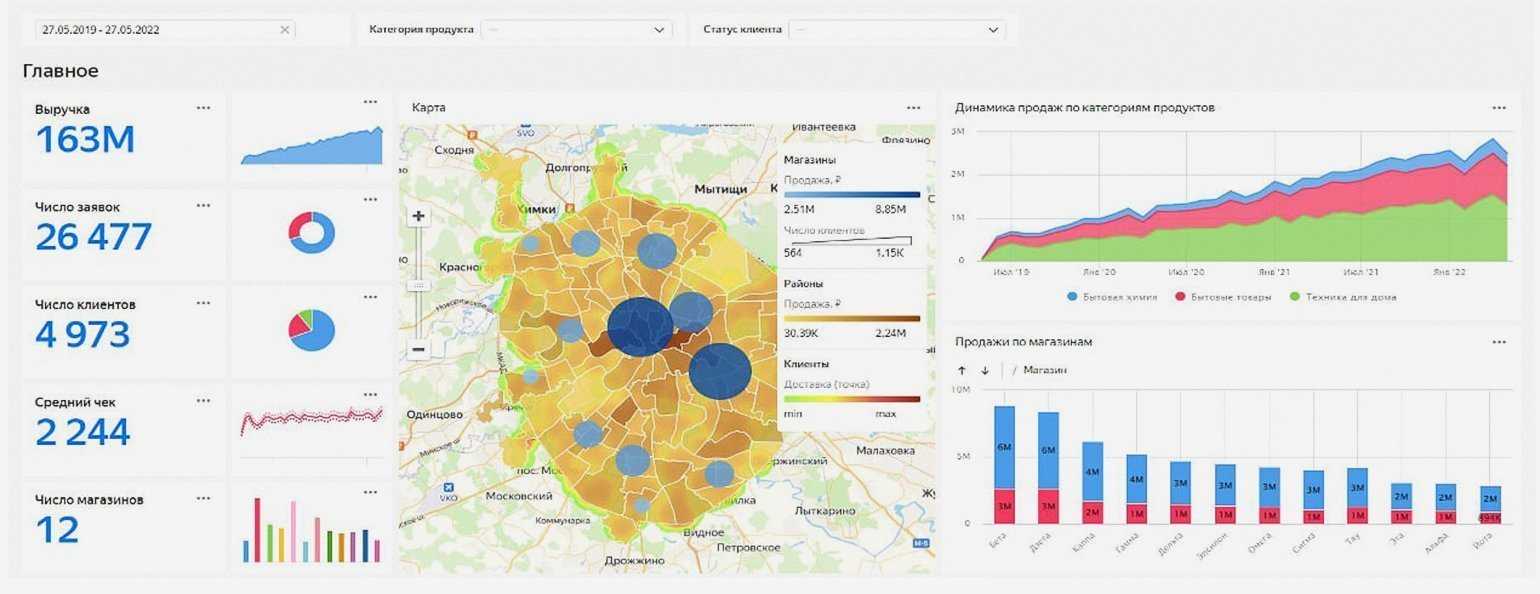 Пример дашборда BI-системы Yandex.DataLenseСкриншот: Светлана Вронская для Skillbox Media