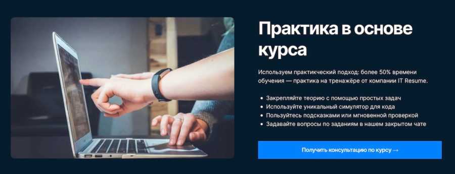 - Учебная программа основана на реальных кейсах, включает больше 50 часов практических испытаний и заданий из тренажера;
