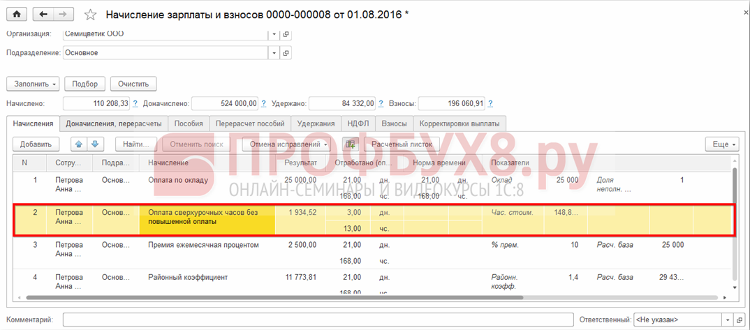 Расчёт и начисление оплаты сверхурочной работы в 1С ЗУП 8.3