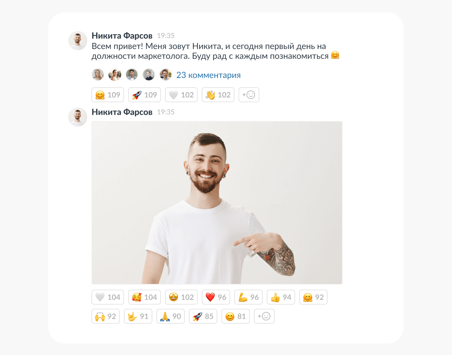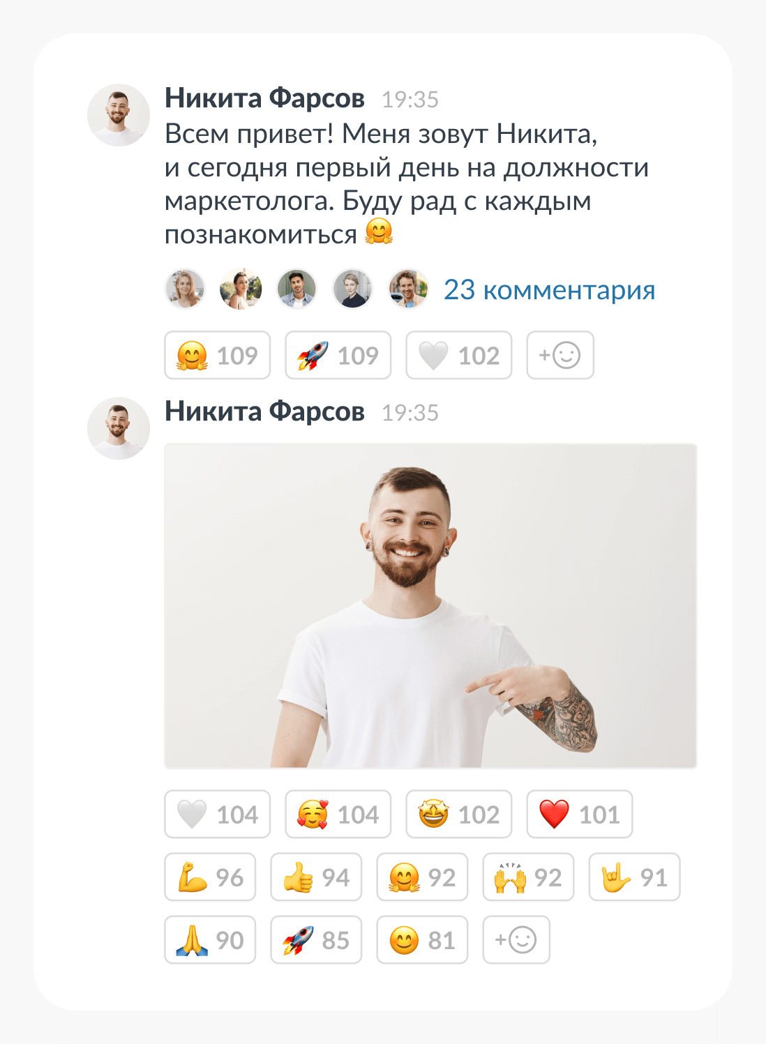 В посте стоит анонсировать приход нового участника команды — так его будущие коллеги смогут представиться и поделиться информацией о себе. Это создаст дружелюбную и открытую атмосферу, способствуя быстрой интеграции новичка в коллектив.