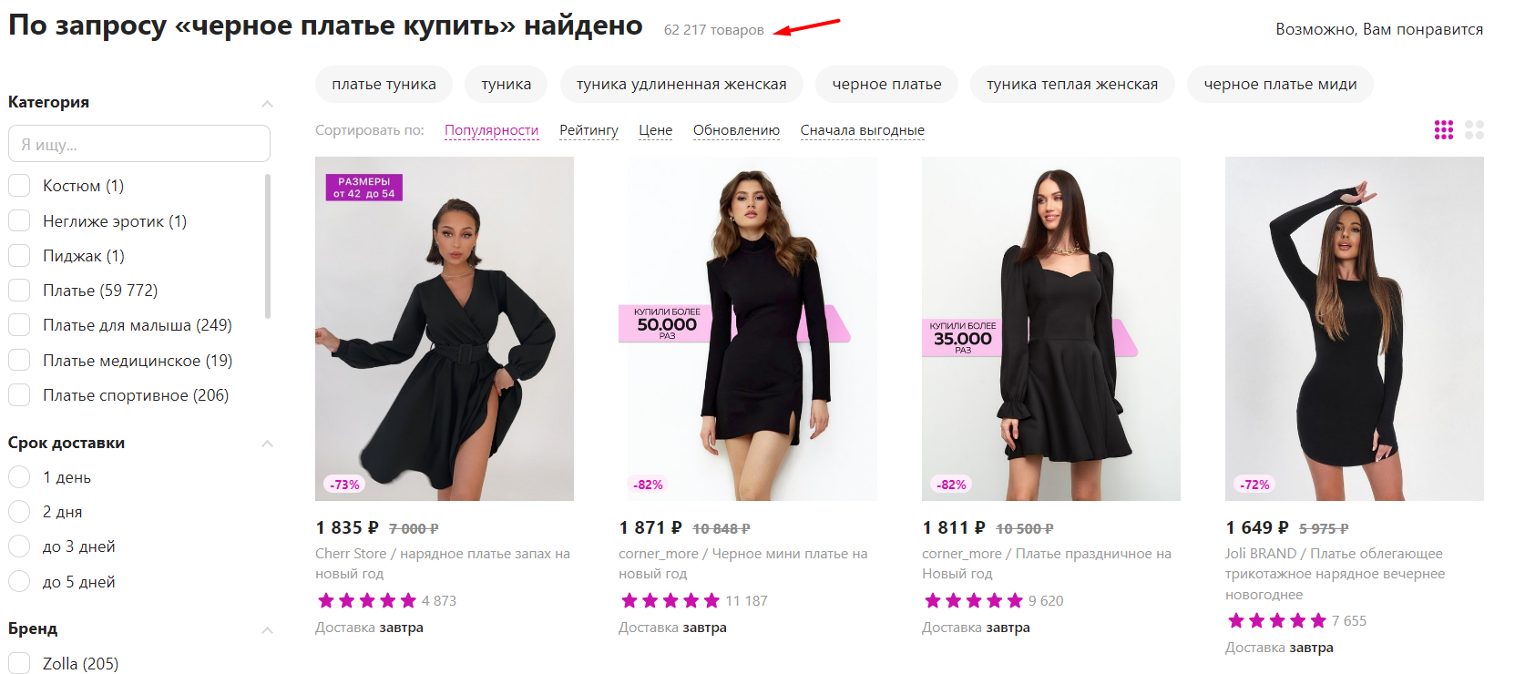 - использовать фильтры — по стоимости, цвету и т. д., чтобы уменьшить выборку и быстрее найти товар. Ведь если выдача содержит тысячи товаров, то вы легко можете пропустить свой;