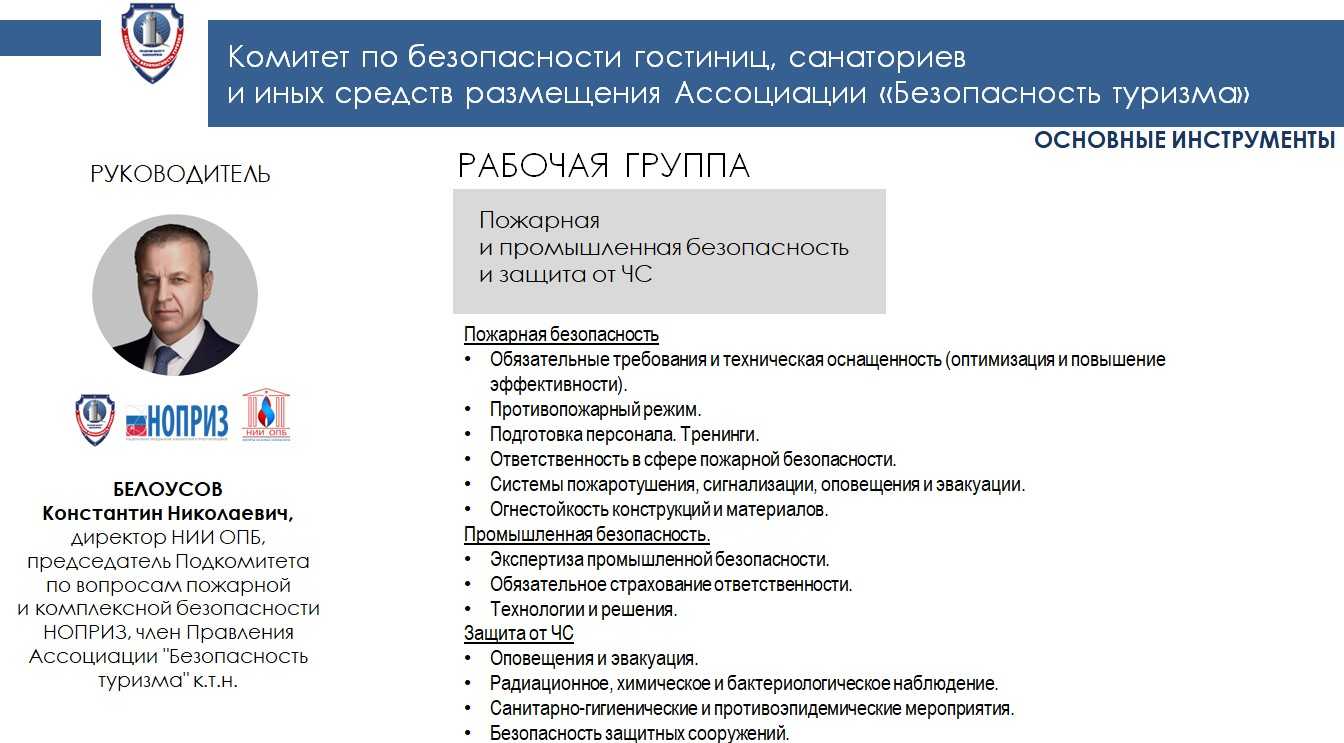 Проблемные вопросы обучения, квалификации, переподготовки в этой сфере, также в числе интересов членов Комитета по безопасности гостиниц, санаториев и иных средств размещения Ассоциации «Безопасность туризма». Подробнее о Комитете>