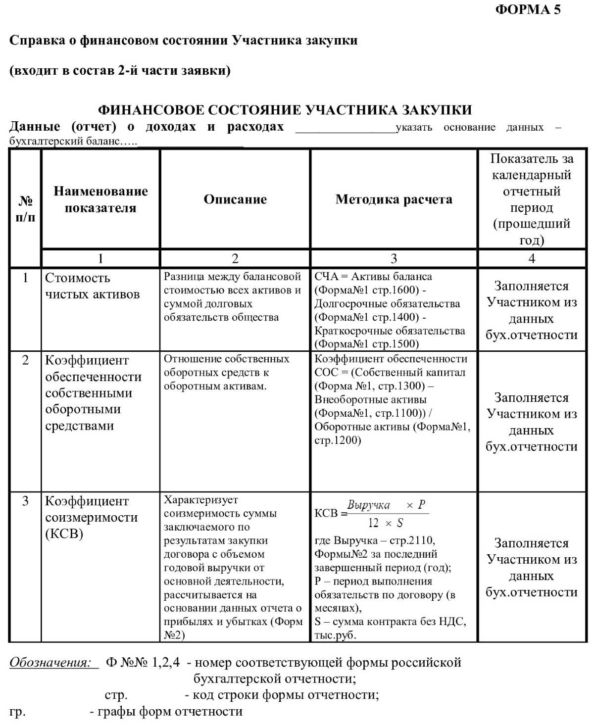 Заказчик включает методику расчета уровня обеспеченности финансовыми ресурсами у участника закупки, где прописано, как рассчитать стоимость чистых активов и необходимые коэффициенты, в тендерную документацию.