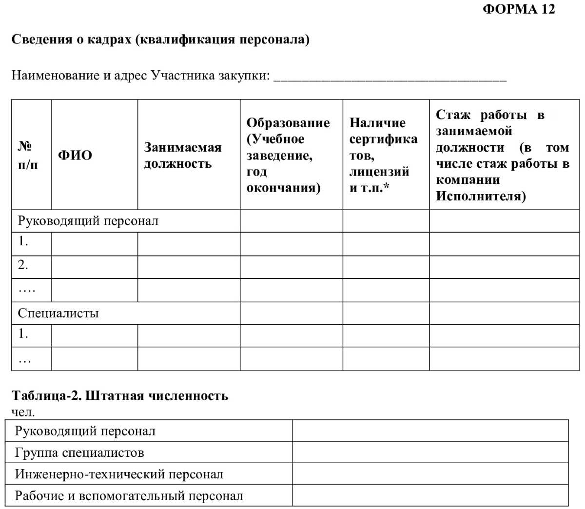 Сведения о наличии квалифицированных кадров оформляют в виде документа, в который внесена информация: