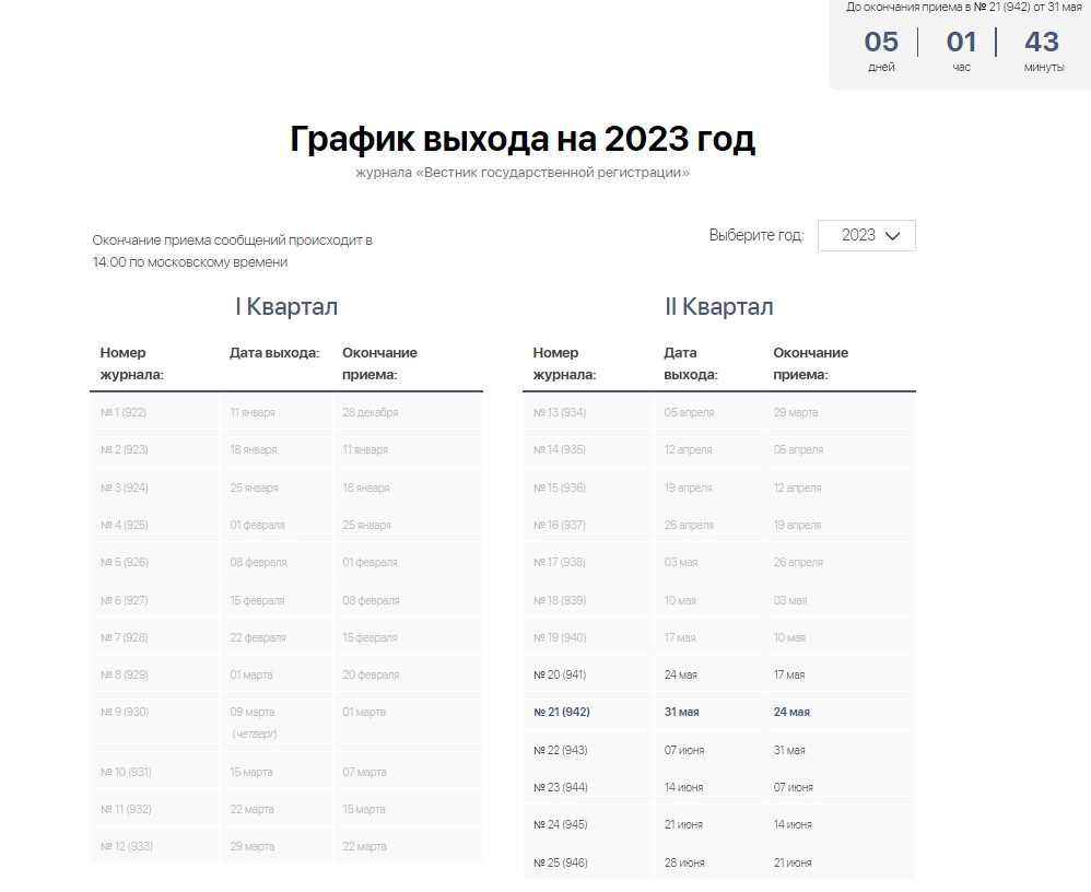 Тянуть с публикацией в Вестнике не стоит еще и потому, что уведомление будет опубликовано не сразу, а в ближайшем выпуске. Журнал выходит примерно 1 раз в неделю. График выхода и время до окончания приема заявлений опубликованы на сайте Вестника.