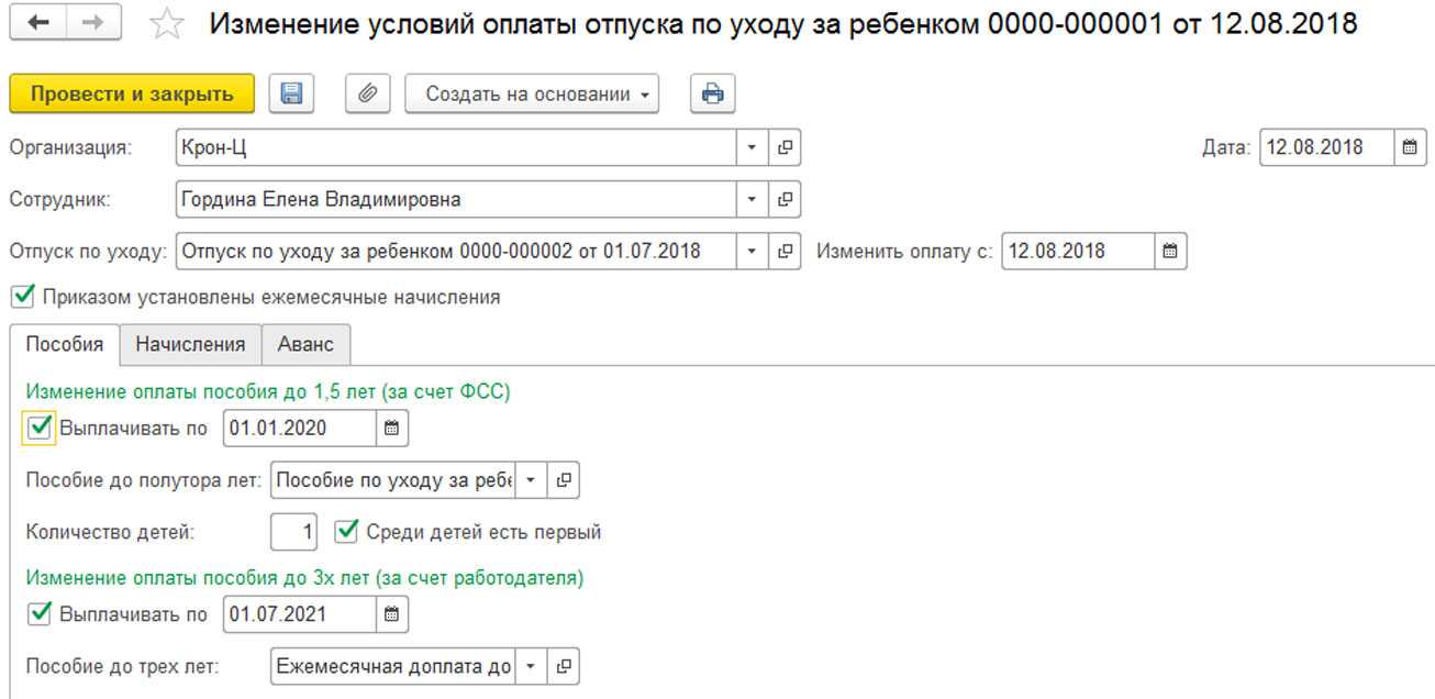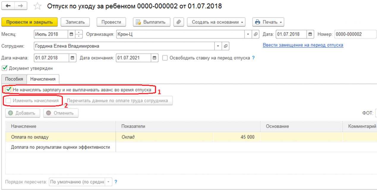 Отпуск по уходу за ребенком в 1С ЗУП 8.3