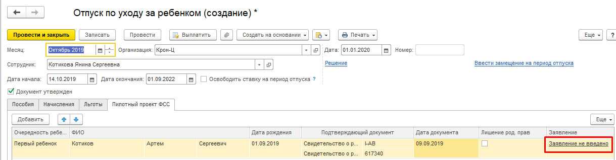Пошаговая инструкция для внесения данных по оформлению отпуска по уходу за ребенком:
