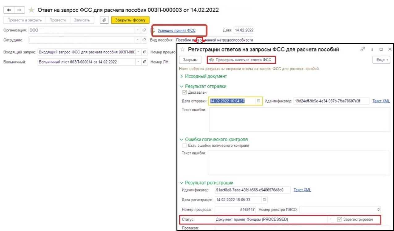 Если ФСС принял ответ на запрос (т. е. пришло подтверждение со статусом » PROCESSED»), больше никаких документов в фонд отправлять не нужно.