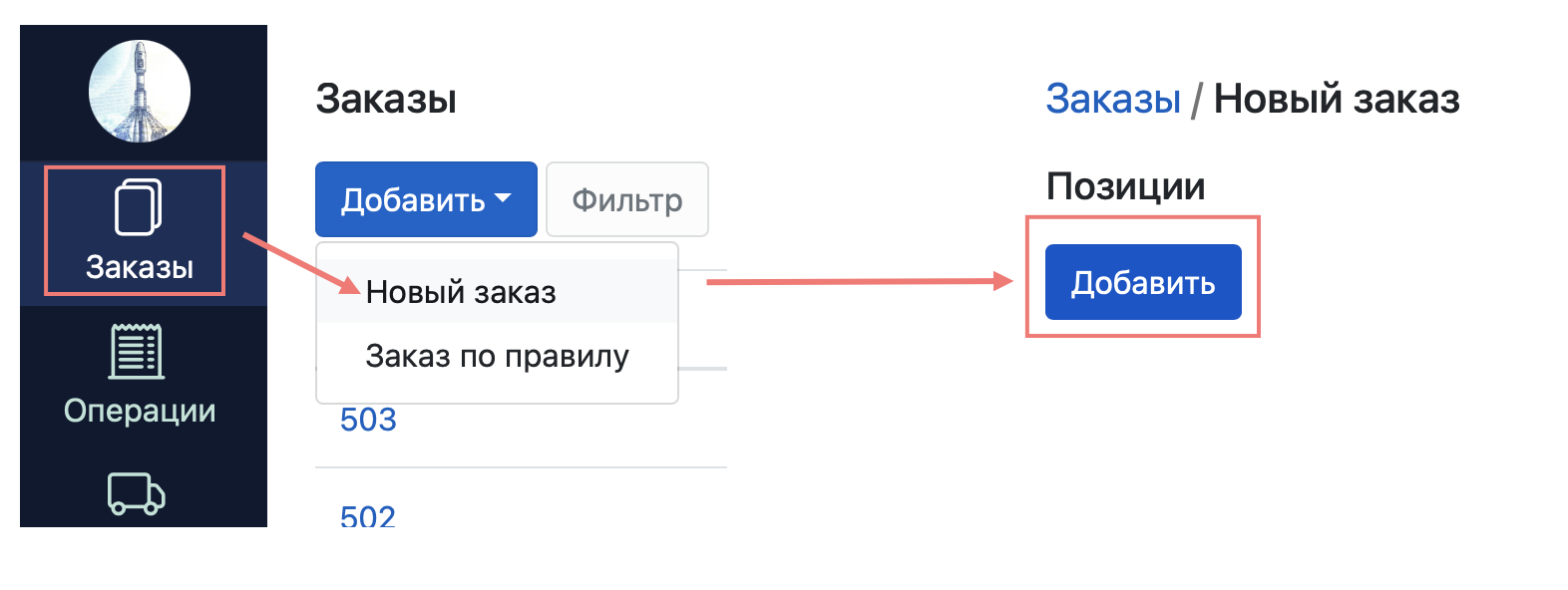 Создайте заказ с одной позицией Тест. Для этого зайдите в раздел Заказы и нажмите Добавить → Новый заказ.