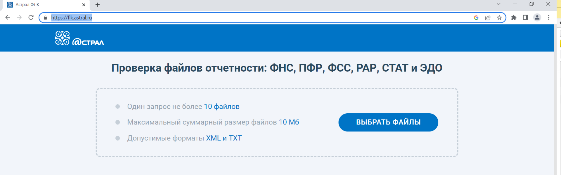 Перед отправкой рекомендуется выполнить форматно-логический контроль заполнения отчета по кнопке Проверка – Проверить в интернете. Если у вас подключение через удаленный рабочий стол, эта проверка может не работать. В данном случае можно будет выгрузить файл и проверить его на сайте Калуга-Астрал https://flk.astral.ru/