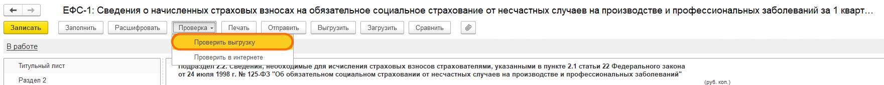 Выгрузка раздела 2 формы ЕФС-1