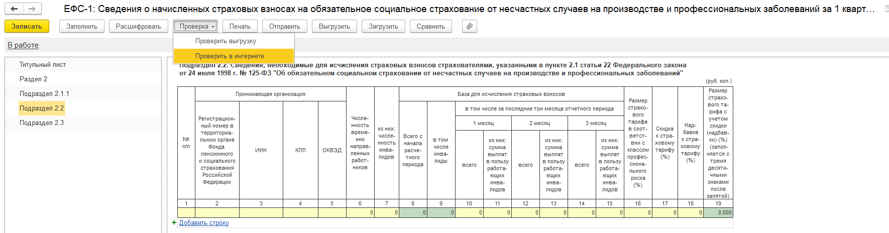 Представление раздела 2 формы ЕФС-1 в СФР в программе ЗУП 3.1